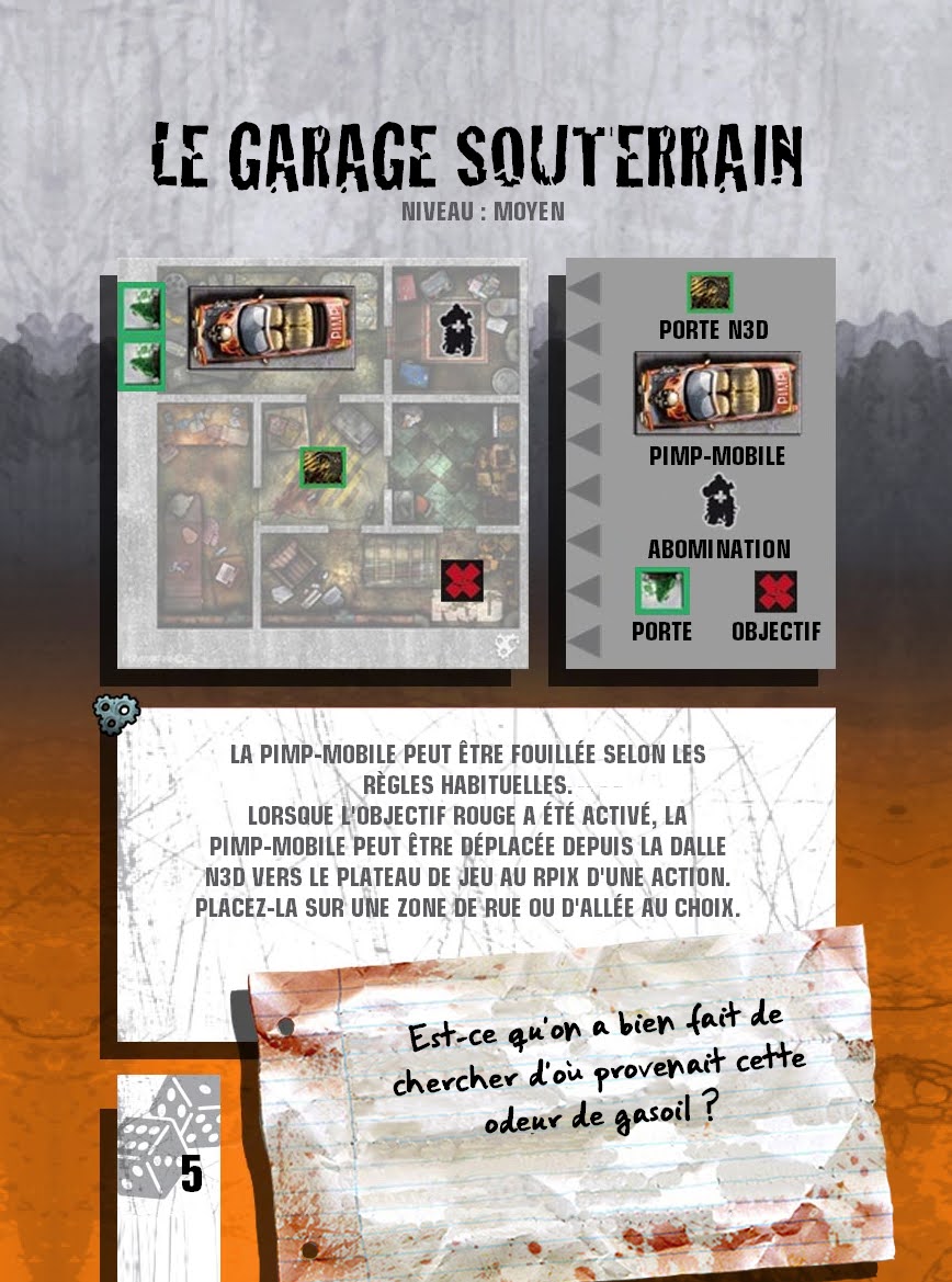 Et pour terminer ce set, les Missions liées aux dalles P1T et N3D, des cartes sur un fond réalisé par l'immense VJu, auteur de nombreux travaux sur Zombicide, dont certaines ont été écrites par l'incontournable XofMdS, pilier du Fansite, et l'un des grands gagnants du regretté concours de Missions...